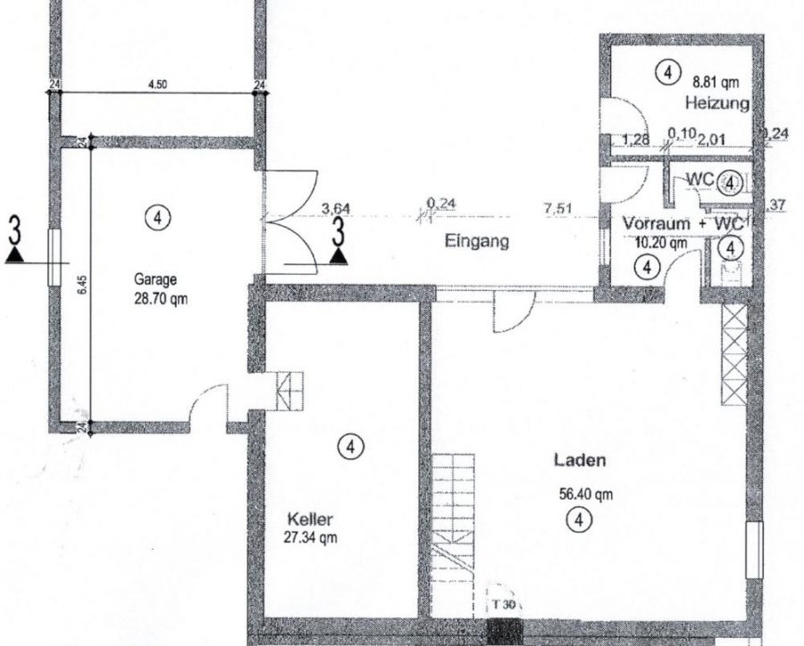 Erdgeschoss: Ladenraum, Vorraum, WC