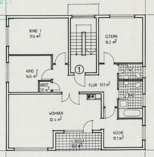 Flur, Bad, Küche, 4 Zimmer, Balkon